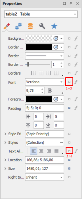 • accertarsi che le “Properties” della tabella siano correttamente formattate, inoltre verificare anche che siano attive (ovvero che abbiano il flag azzurro acceso), per far ciò è necessario modificare la proprietà del campo impostando una valorizzazione diversa e reimpostando nuovamente quella desiderata;